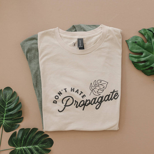 "Don't Hate, Propagate" Plant Themed Graphic T-Shirt